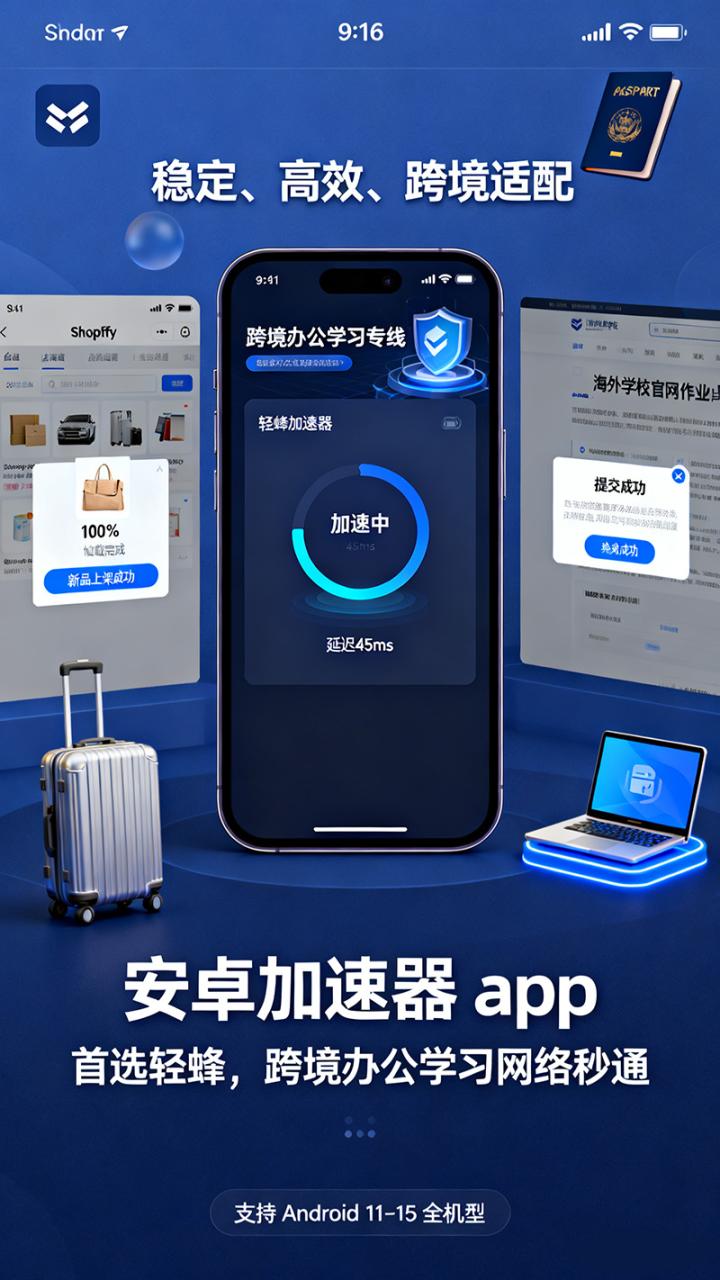 如果你是跨境办公的职场人、海外留学生,正在被安卓手机的跨境网络问题困扰,不妨试试轻蜂加速器:
