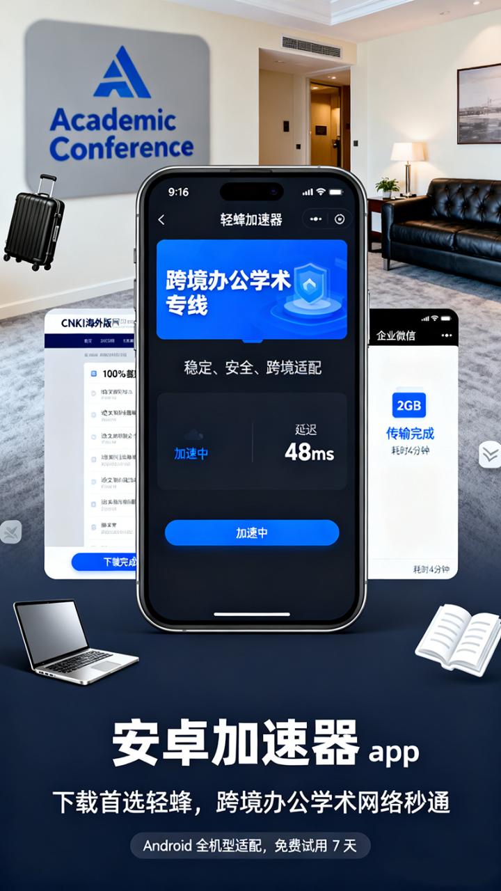 大学教授赵老师分享:“我经常去国外参加学术会议,之前用安卓手机看国内学术数据库、跟团队开线上研讨会,延迟高得离谱,画面卡到没法交流。后来做了安卓加速器 app 下载攻略,选了轻蜂。现在不管在哪个国家,打开 CNKI 海外版秒加载,会议直播全程流畅,下载研究数据也特别快,学术交流再也不受网络限制了。”